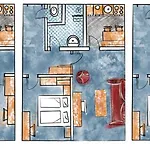 Bu dairede odaların tümü kanepe, Wi-Fi, televizyon gibi olanakları içermektedir. Odalarda ahşap mobilya sunulur. Her birim duş, saç kurutma makinesi içeren özel banyoya sahiptir.
